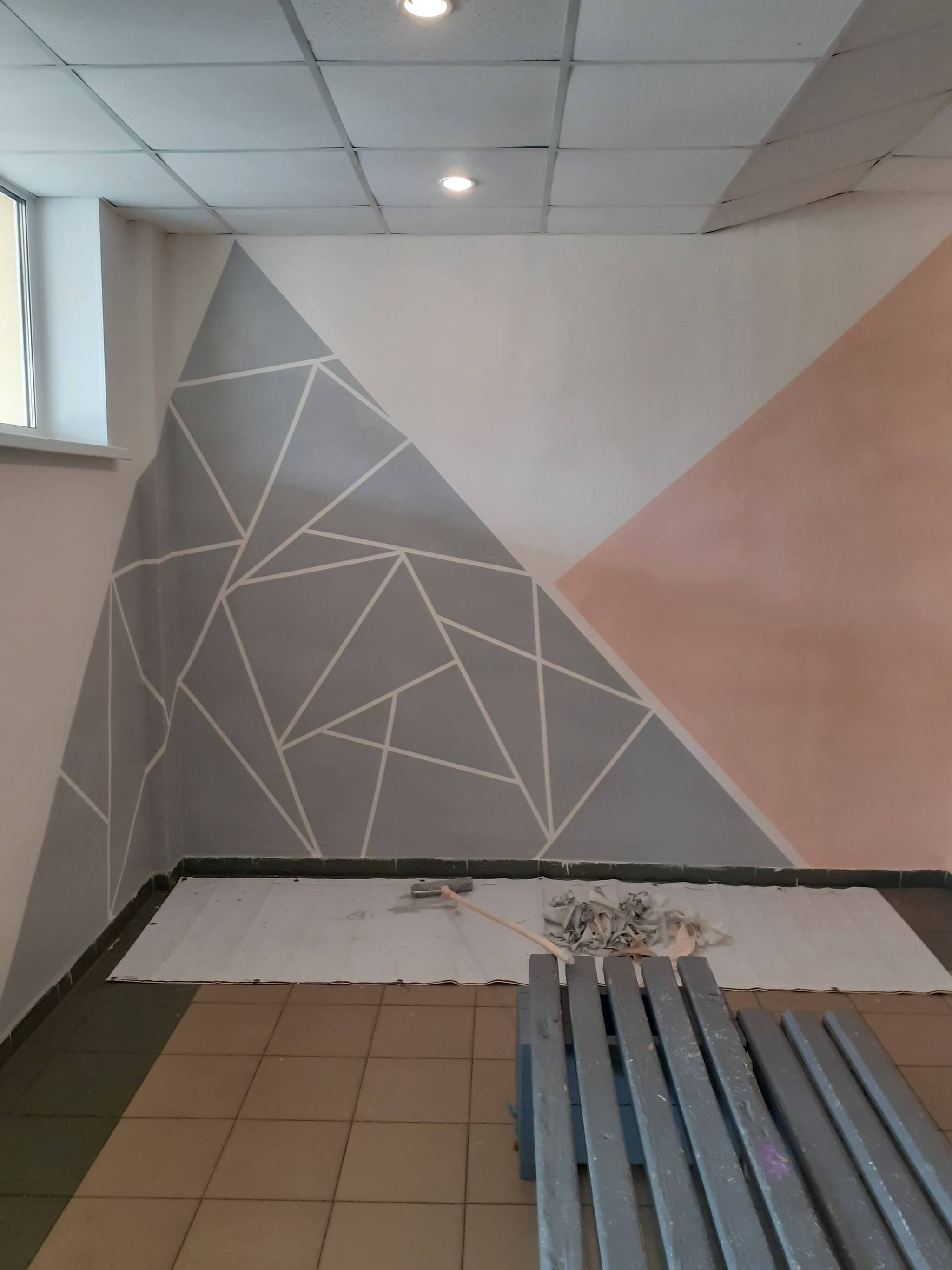 С учителем ИЗО преобразовали холл школы (раньше он был просто мятного цвета).