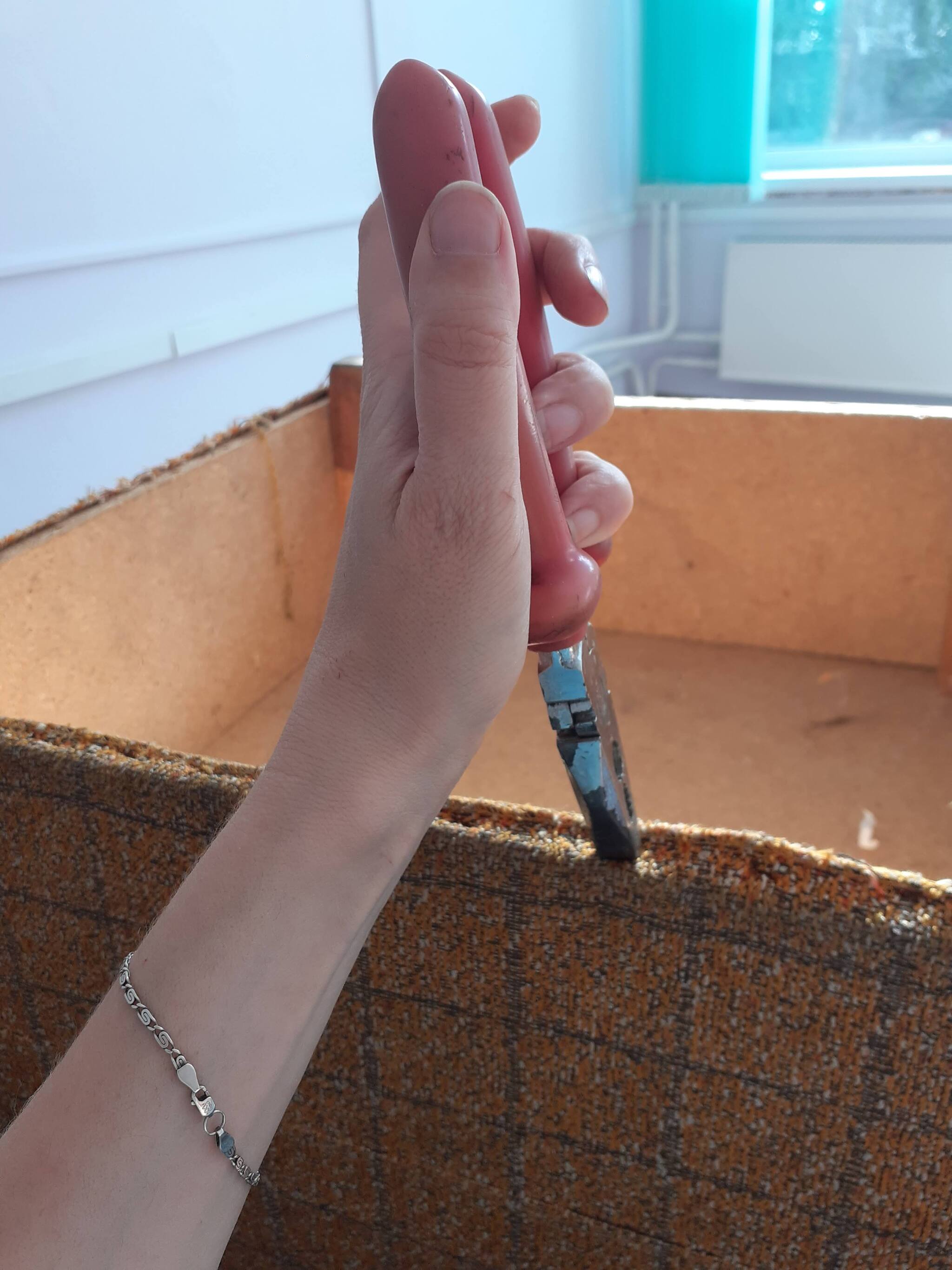 А для кабинета (что-то связанное со школьными инициативами) перетянула пуфики.