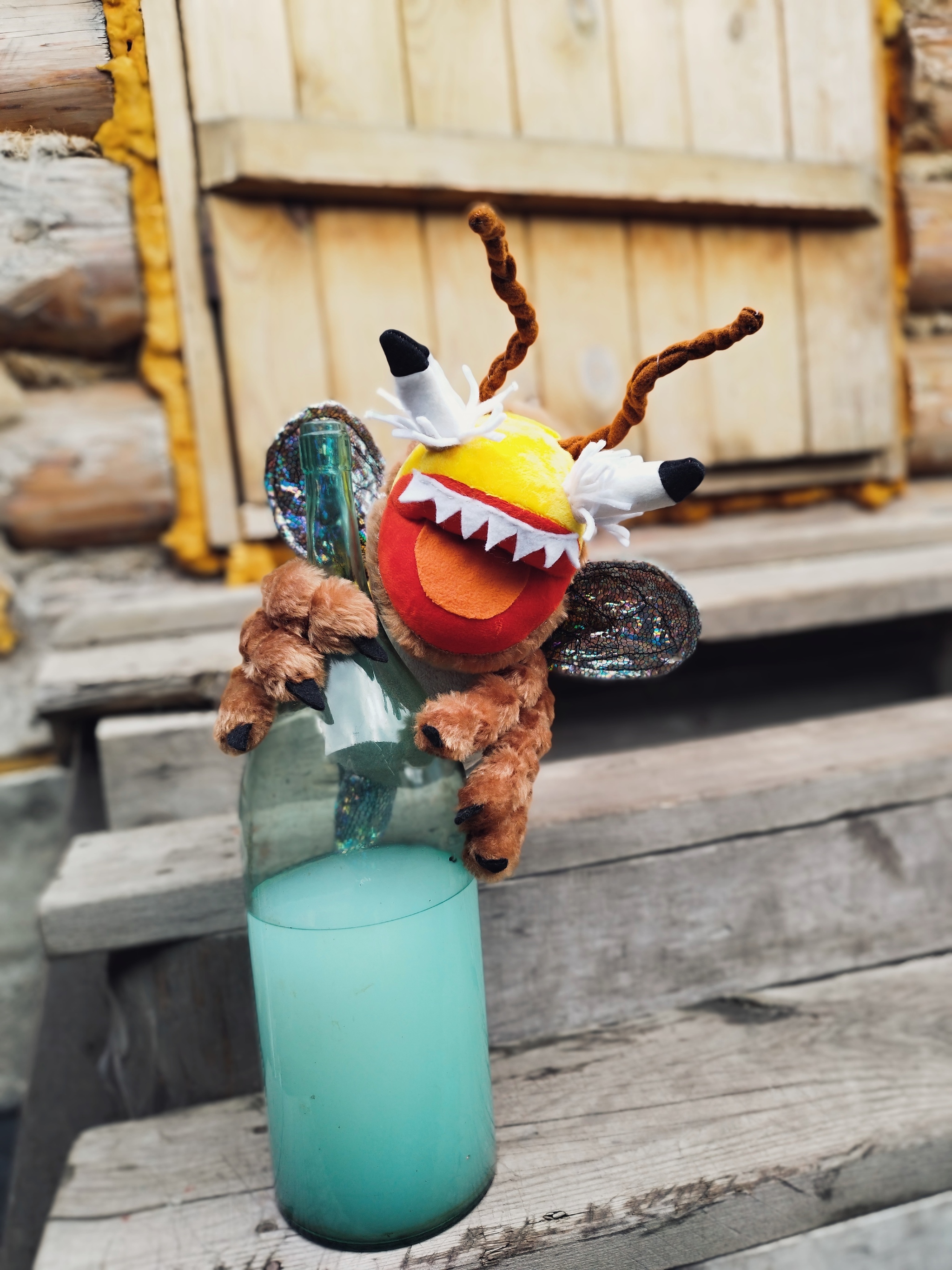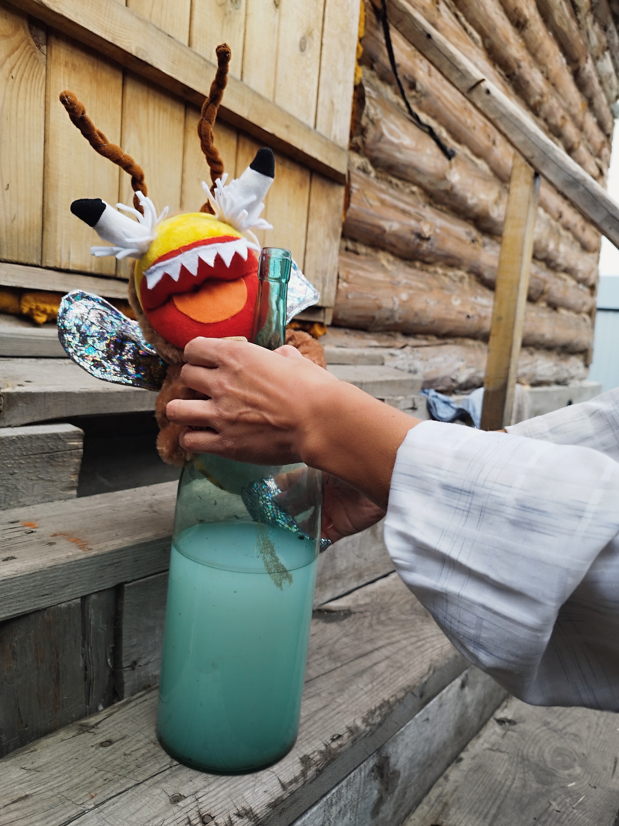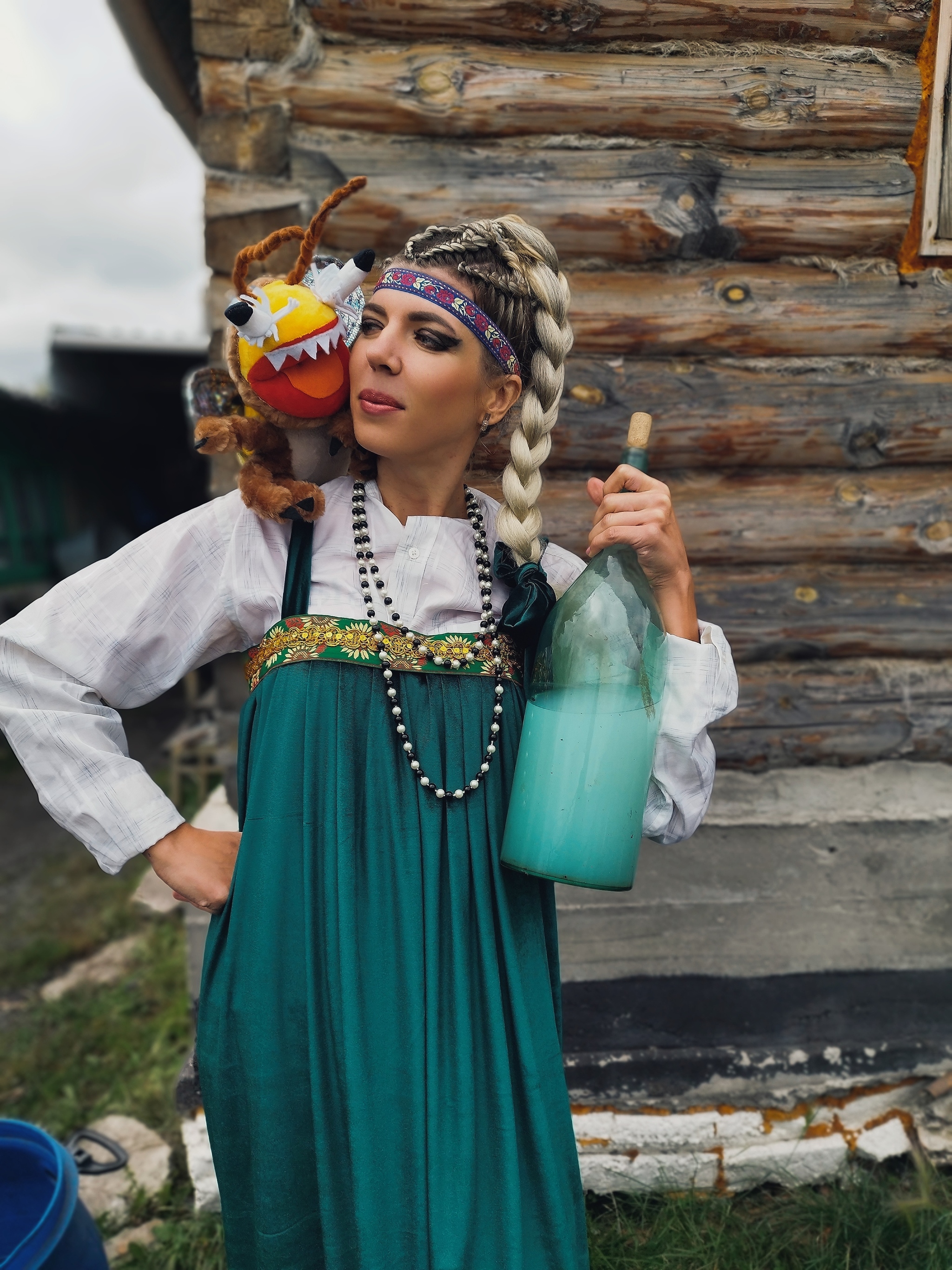 Я хотела для этой всратой пчелы сделать фотосессию, пока искала бутылку решила и себя нарядить в образ бабы из деревни дураков