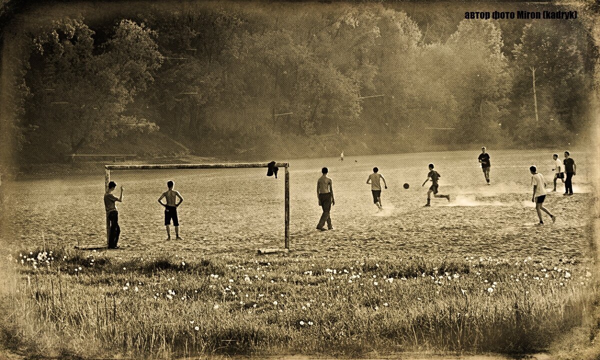 Подростки с голыми торсами бегали по полю и пинали мяч. В углу стадиона валялось несколько поломанных и грубо униженных табличек.