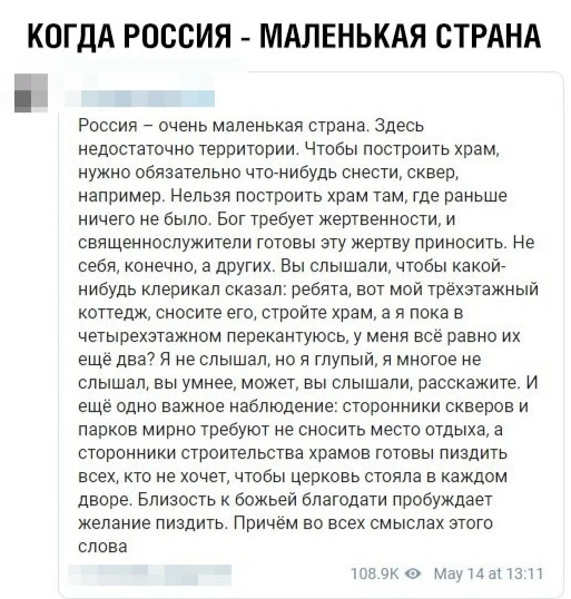 Прочитал в новостях что в Красноярске на красивой набережной хотят воткнуть очередной ларёк по продаже церковной атрибутики и сбора последнего бабла с населения. Сука, на той лужайке люди с детьми играют! В радиусе километра есть 2 церкви, а они, твари, решили набережную испоганить этим уёбищем! Чухнули, что там много народа ходит и решили там свою копилку воткнуть. Подскажите, как можно воспрепятствовать строительству в правовом поле? Уверен что есть инициативная группа противников этого чудовища.Куда писать, куда идти? Прошу поднять в топ. Надо остановить этот беспредел!