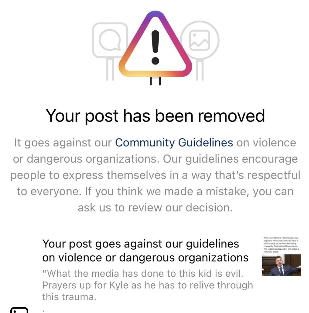 Несмотря на то, что судебный процесс всё еще продолжатся, Биг Тех уже "вынес решение" о виновности Риттенхауса и цензурит высказывания в его поддержку.