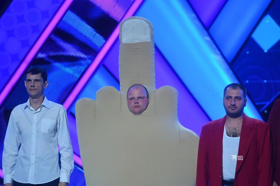 15 июля на игре «КВН. Встреча выпускников 2022» в Екатеринбурге участник «Сборной Снежногорска» вышел на сцену в костюме среднего пальца: