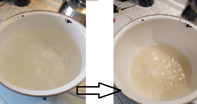 Далее начался самый скучный этап. Взяли старую эмалированную кастрюлю и начали выпаривать воду.