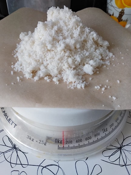Честно, не ожидал, что ее будет так много. Не стали выпаривать ее досуха, чтобы не прожечь эмаль. Мокрую выложили на бумагу и досушили в духовке.