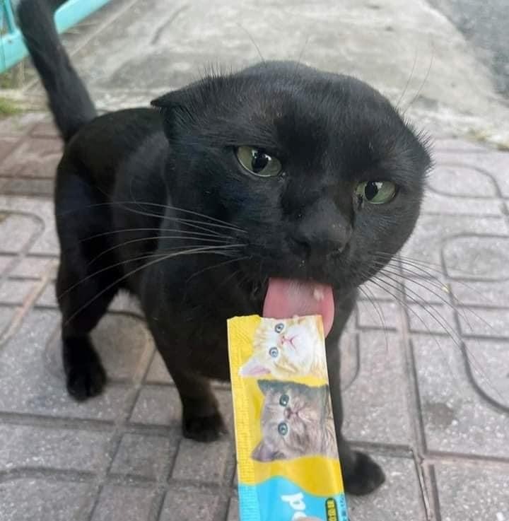 Ест строго сухой корм, оливки, крабовые палочки, икру, и ягодное мороженое ,больше за еду ничего не признает)