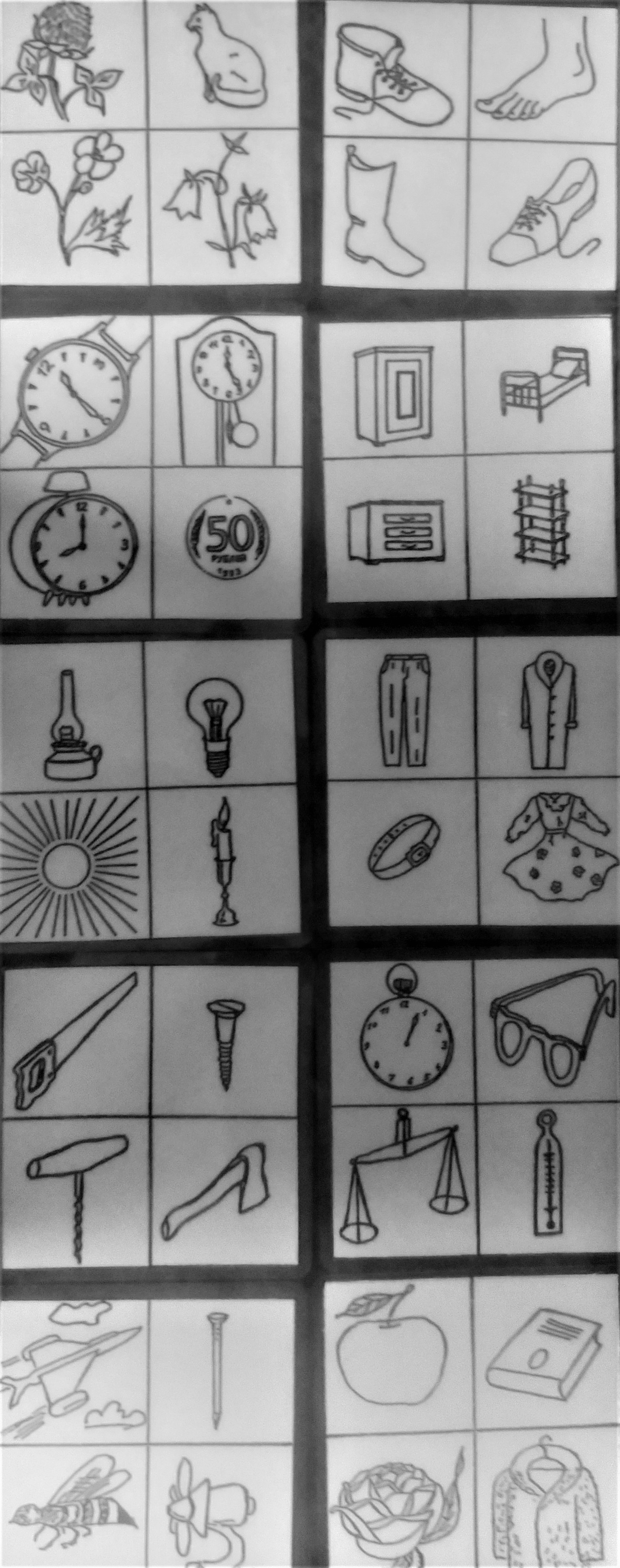 И где тут симптом спросите вы? Может казаться что люди отвечают не стараясь или просто на отшибись. Но симптом в том что у шизофреников нарушается категоризация, то-есть главным отличительным для них становиться не действительно основные категории например как в первой картинке животные и растения, а на первый план вылезают латентные или вторичные не особо важные признаки, как то что кошка вкусная. На картинке с часами главные категории это часы и монета именно по упоминанию этих категорий вы поняли про какую я карточку, но пациент сказал о наличии/отсутствии маятника, а маятник вернее его наличие это точно не основная категория. В примере с вкусной кошкой становиться понятно что важно не просто выбрать лишнее а ещё и правильно обосновать.