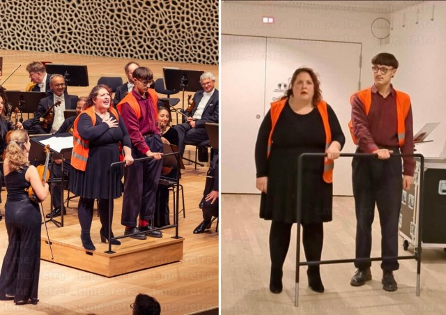 Два псевдоборца за экологию попытались сорвать концерт симфонического оркестра, приклеив себя к дирижерскому пульту.