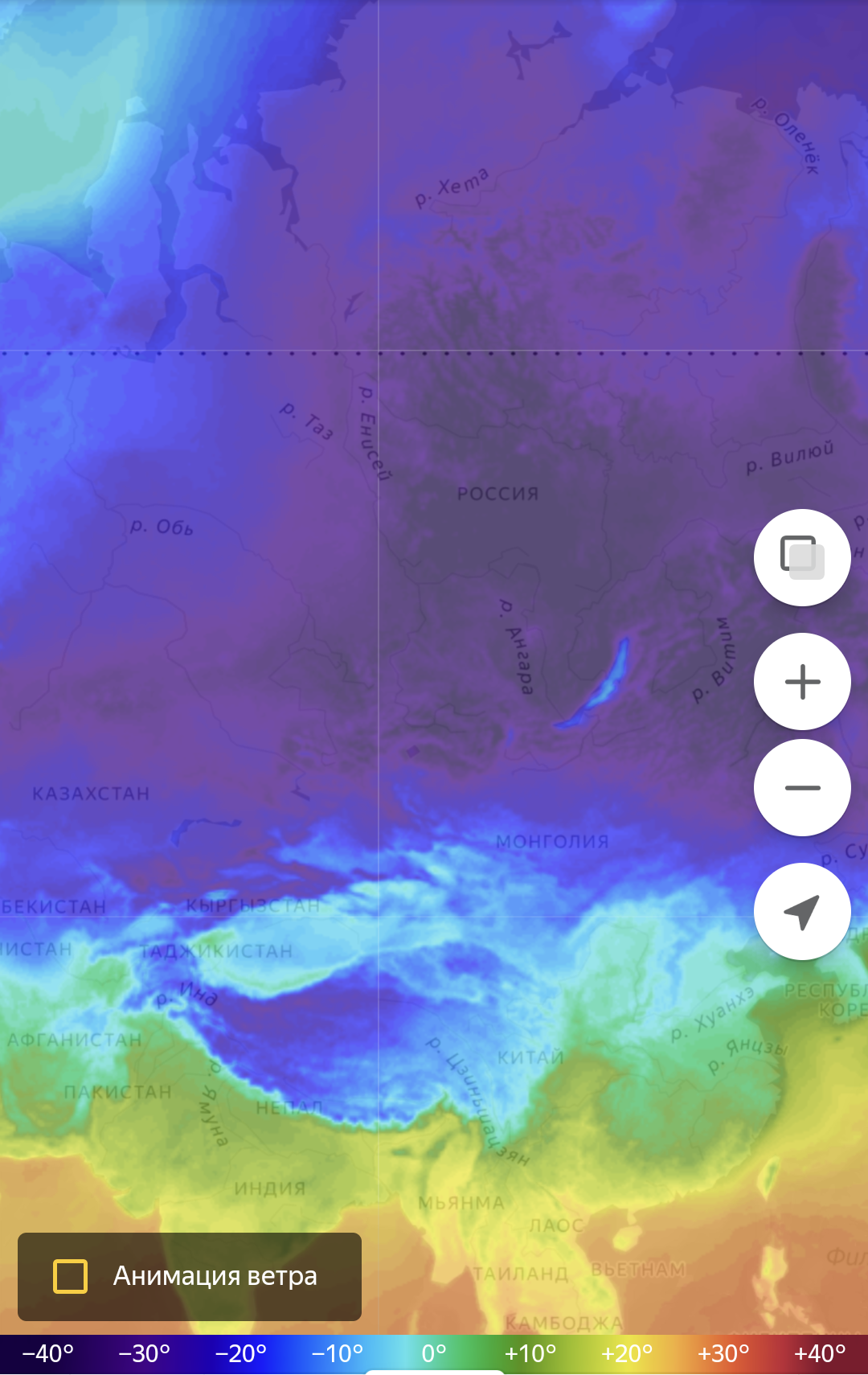 Россия это не только самая большая страна, но и самое большое фиолетовое пятно сверхнизкой температуры воздуха в зимний период.