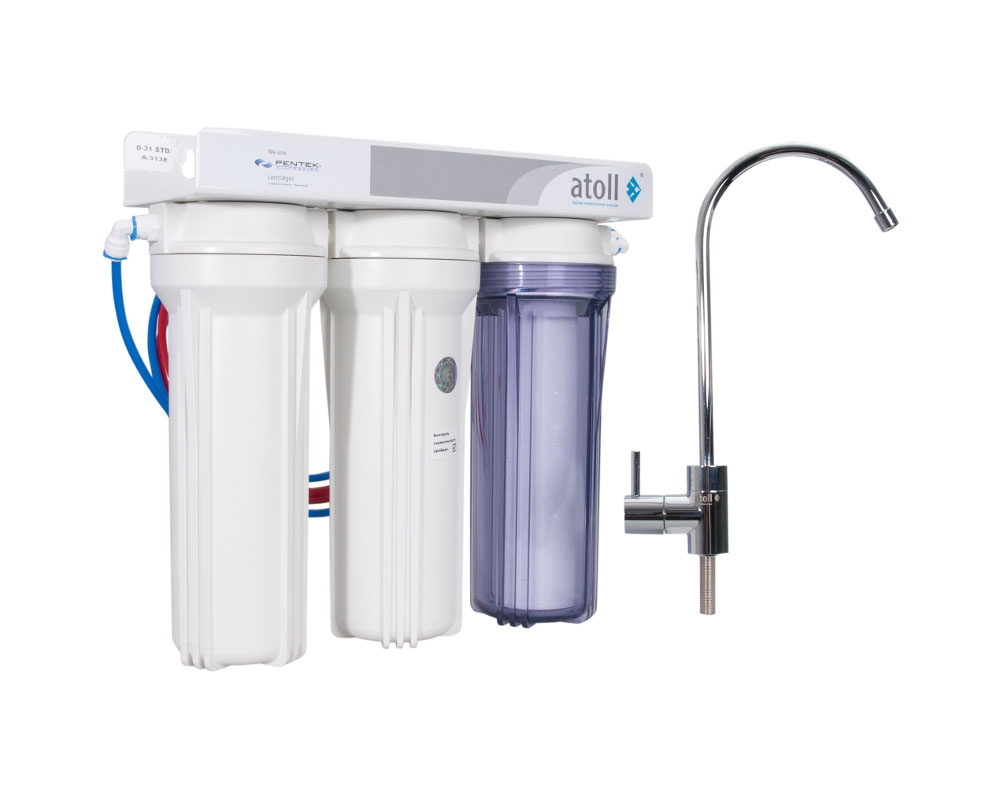 • Вода - Устанавливаем 3-х ступенчатый фильтр под мойку. Тут экономику рассчитать сложно, так как у всех разная вода в кране, но в среднем картриджей хватает на 6000 литров, стоимость литра воды в водомате 2-3 рубля. Сам фильтр стоит от 2-х до 3-х т.р. Стоимость набора сменных картриджей ~1000 рублей. Фильтр окупится за ~2000 литров. А еще не нужно будет бегать набирать воду, экономия времени тоже важно)