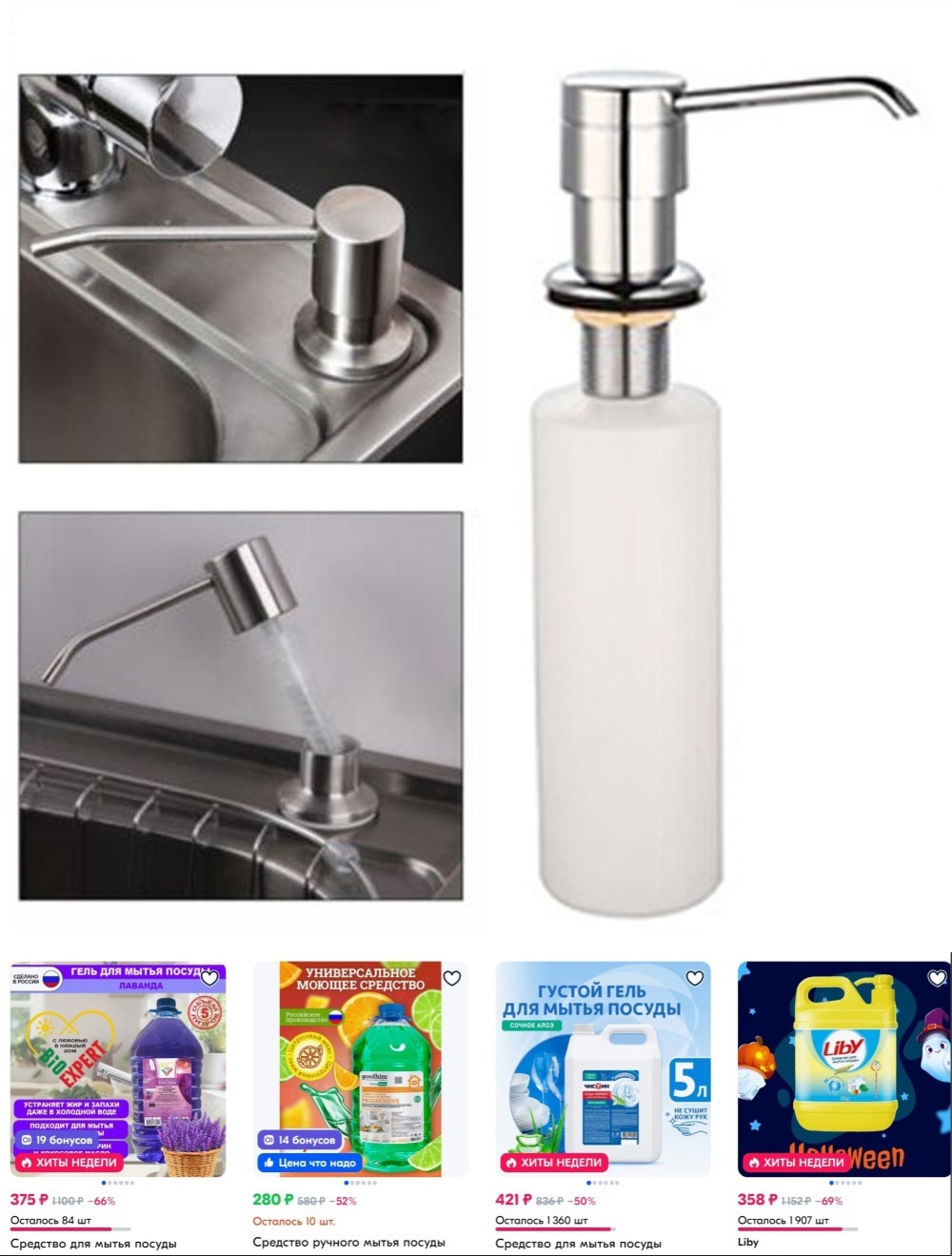 • Моющее средство в канистрах + автоматический дозатор жидкого мыла, принцип тот же. Экономим на объеме, только преобразуем густой гель в пену и расход получается раза в 3 меньше. Мне одной канистры в 5л хватает на год точно (живем в двоем). Экономия по моим расчетам раза в 4-ре