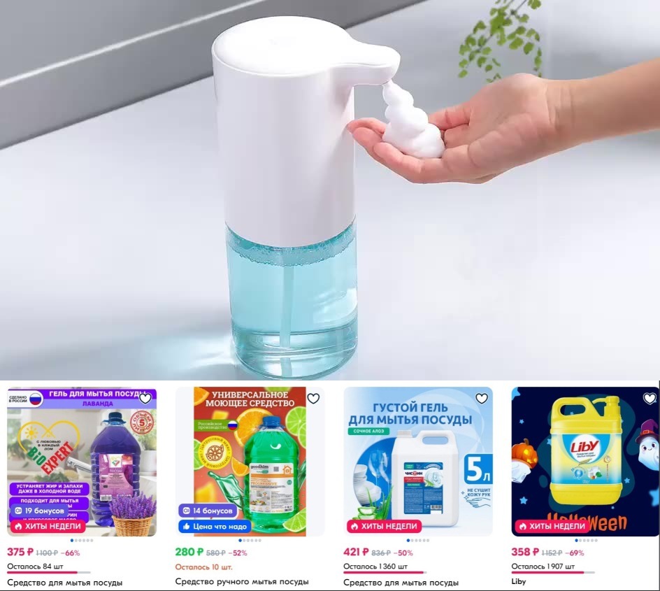 • Средство для мытья посуды в канистрах. Стоимость канистры на 5л. на маркетплейсах от 300 до 600р. В среднем 30/60р за литр. В розничных магазинах 100-150р за 0.5 литра. Экономия почти в два раза.