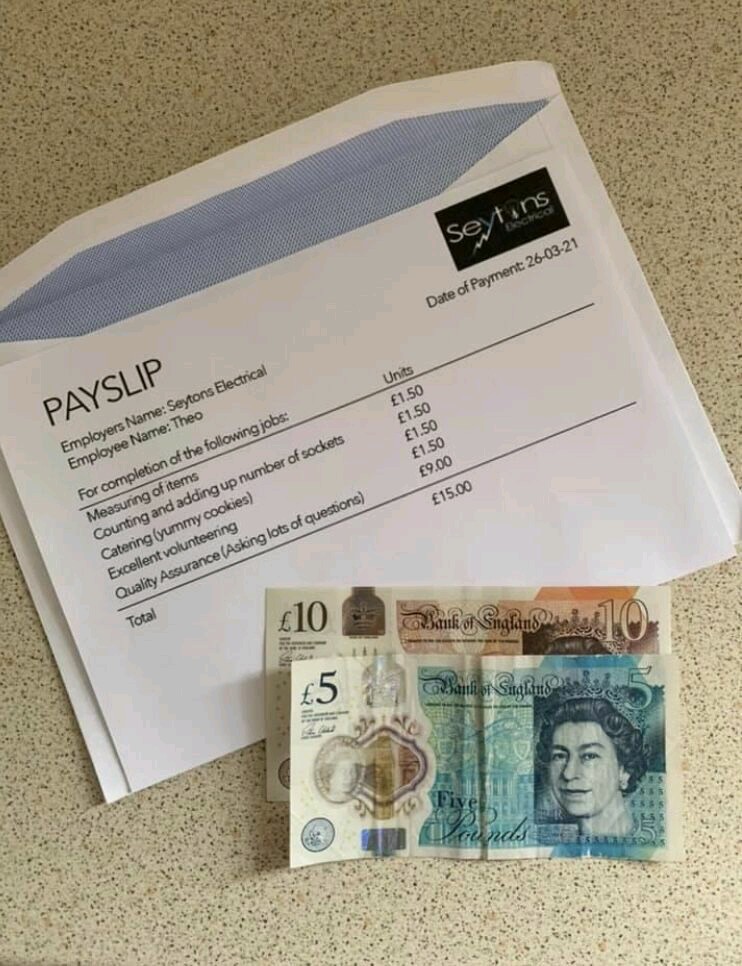 Через пару недель знакомому пришло письмо от фирмы электриков, в котором был расчетный лист, адресованный Тэо, и его зарплата в 15 фунтов.