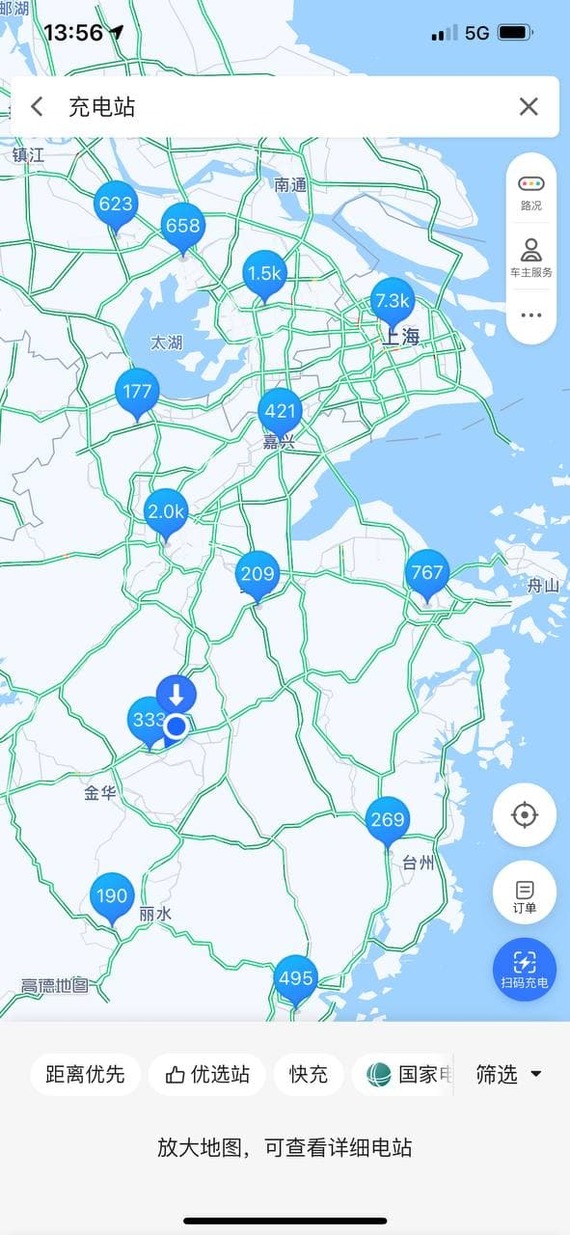 В этом масштабе видно только общее количество зарядных станций в соот городе. Сверху можете увидеть Шанхай - в нем 7300 зарядных станций.