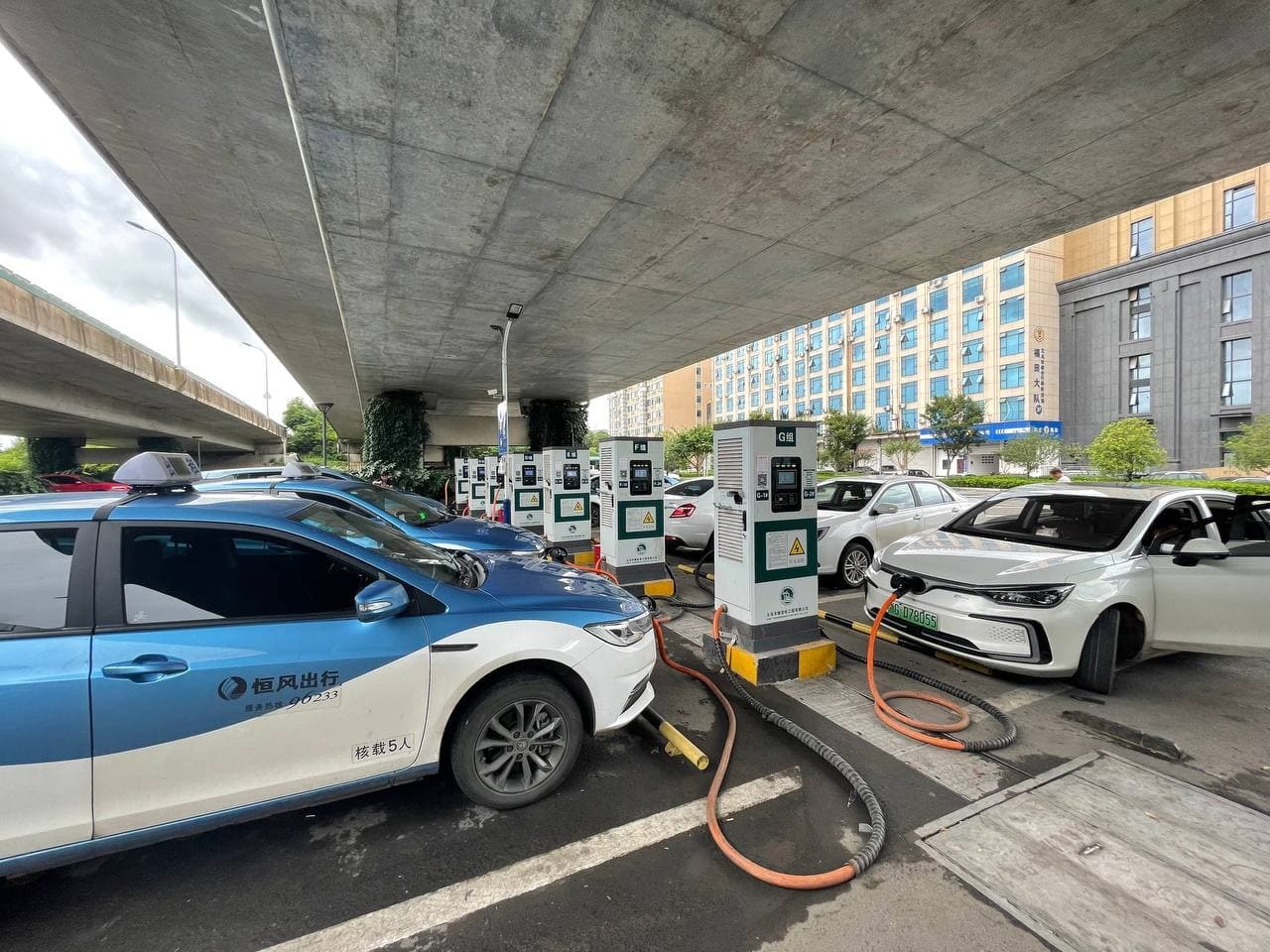 Построили ее под развязкой, чтобы сэкономить на навесе от дождя) Заряжаются по большей части таксисты. У нас в городе 100% автомобилей такси - электрические.