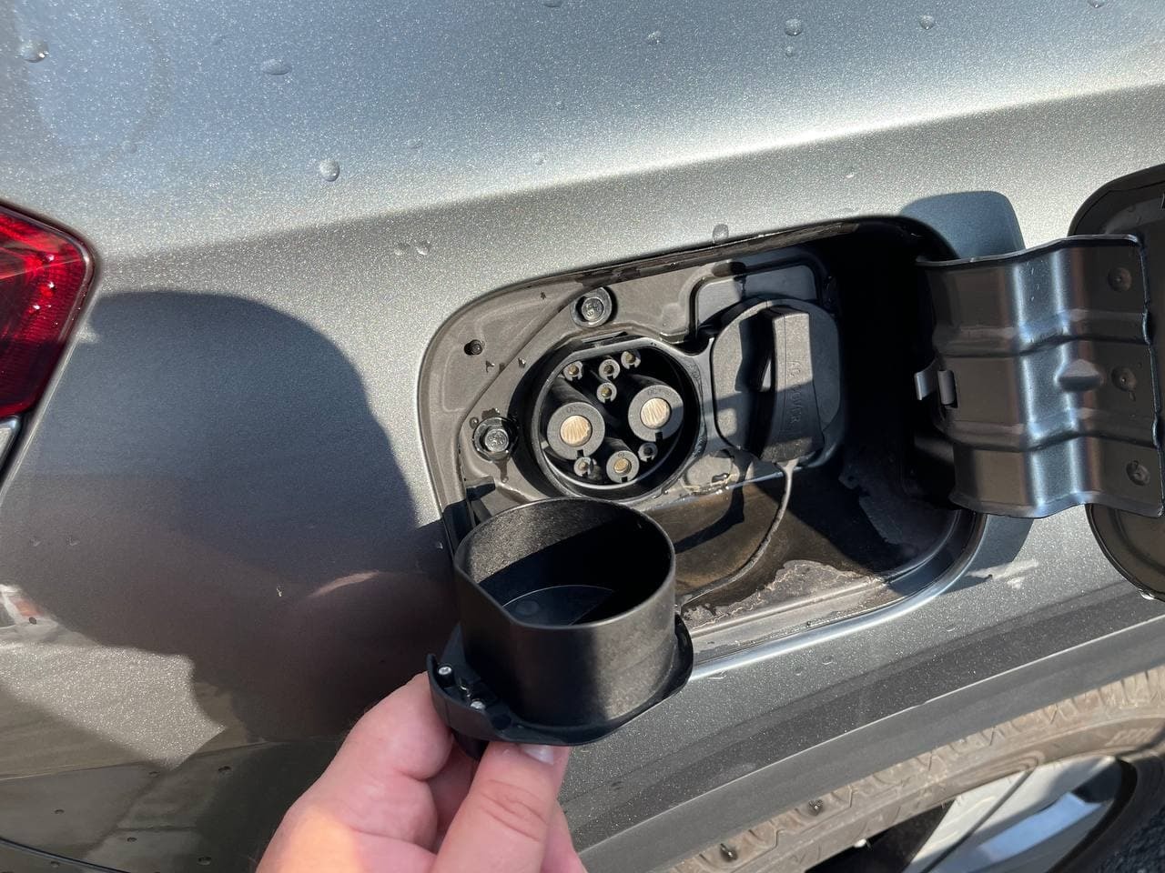Кто не знал - есть два способа зарядки электромобиля - медленный и быстрый. Соответственно в "бензобаке" два разъёма - большой и маленький: