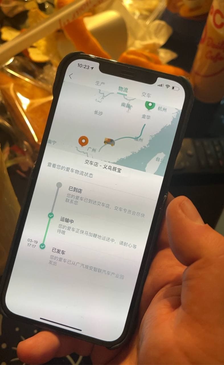 После этого был этап ее тестирования, документы делали или еще что, короче отправили ее к нам в город из Гуанчжоу только 19 марта. Разумеется приложение об этом сообщило и показывало где именно она едет в данный момент: