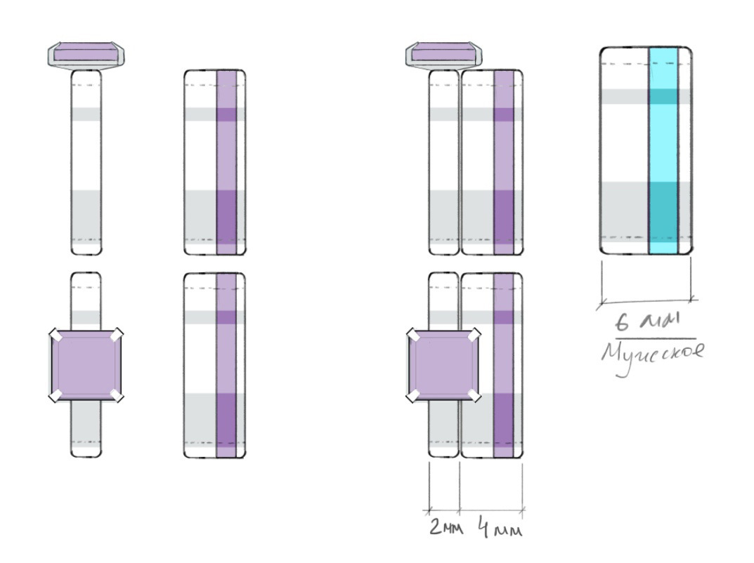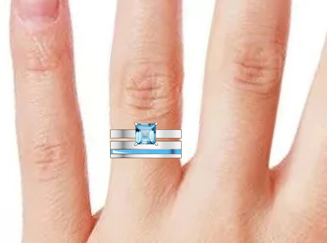 Я бы хотел заказать у вас комплект из 2 обручальных и помолвочного кольца. По задумке обручальное и помолвочное должны носиться вместе. Помолвочное с квадратным камнем и два обручальных просто со вставкой из ювелирной смолы. Общий вид хотелось бы что-то вроде вот такого.