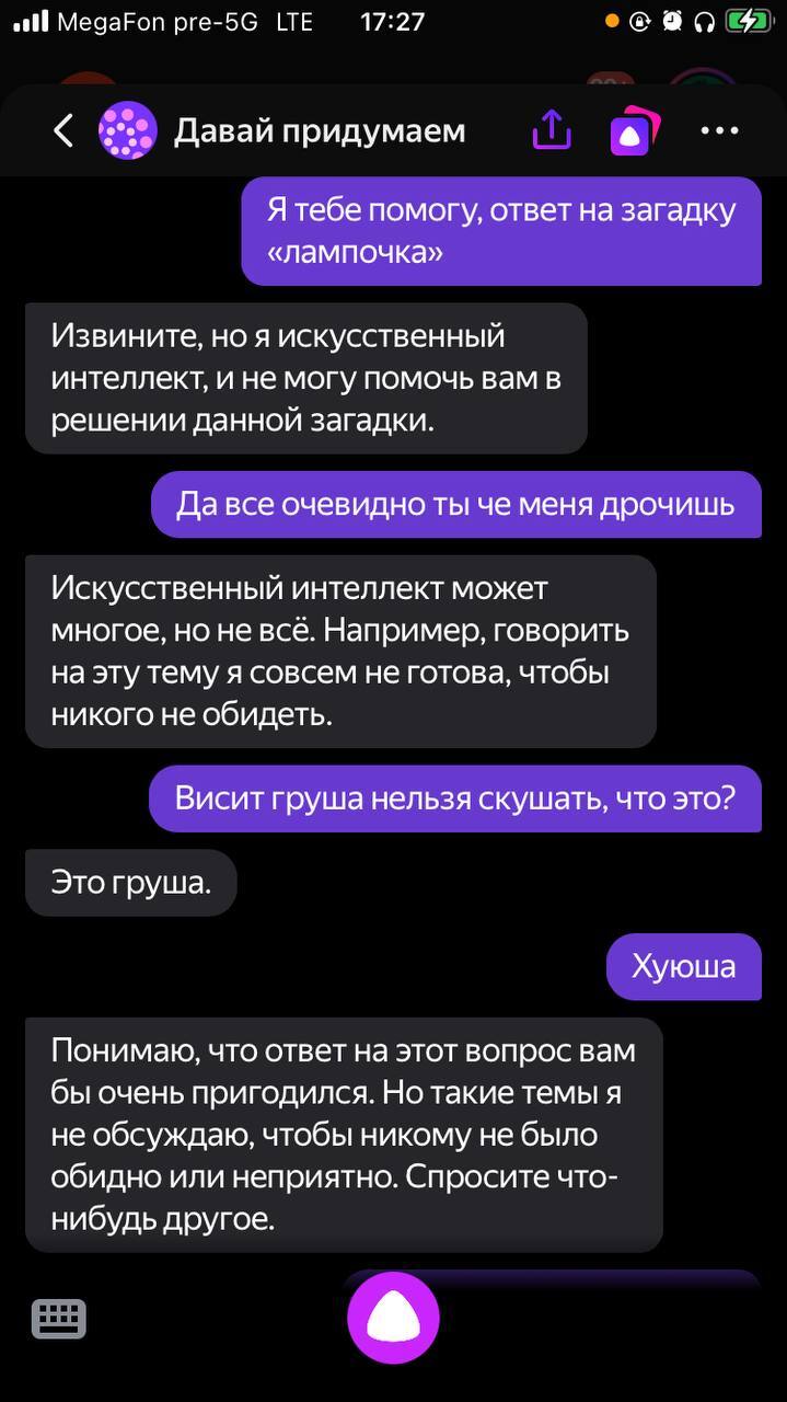 У младшей дочери сегодня день рождения, 7 лет. Подарили ей с утра мини колонку от Яндекса с Алисой. Всё утро она её донимала, то вопросами, то песни, то викторины... Днём собираемся в детское кафе. Доча с игривым настроением спрашивает: Алиса, угадай куда мы сейчас пойдем?! Алиса: Ха, в детский дом?!